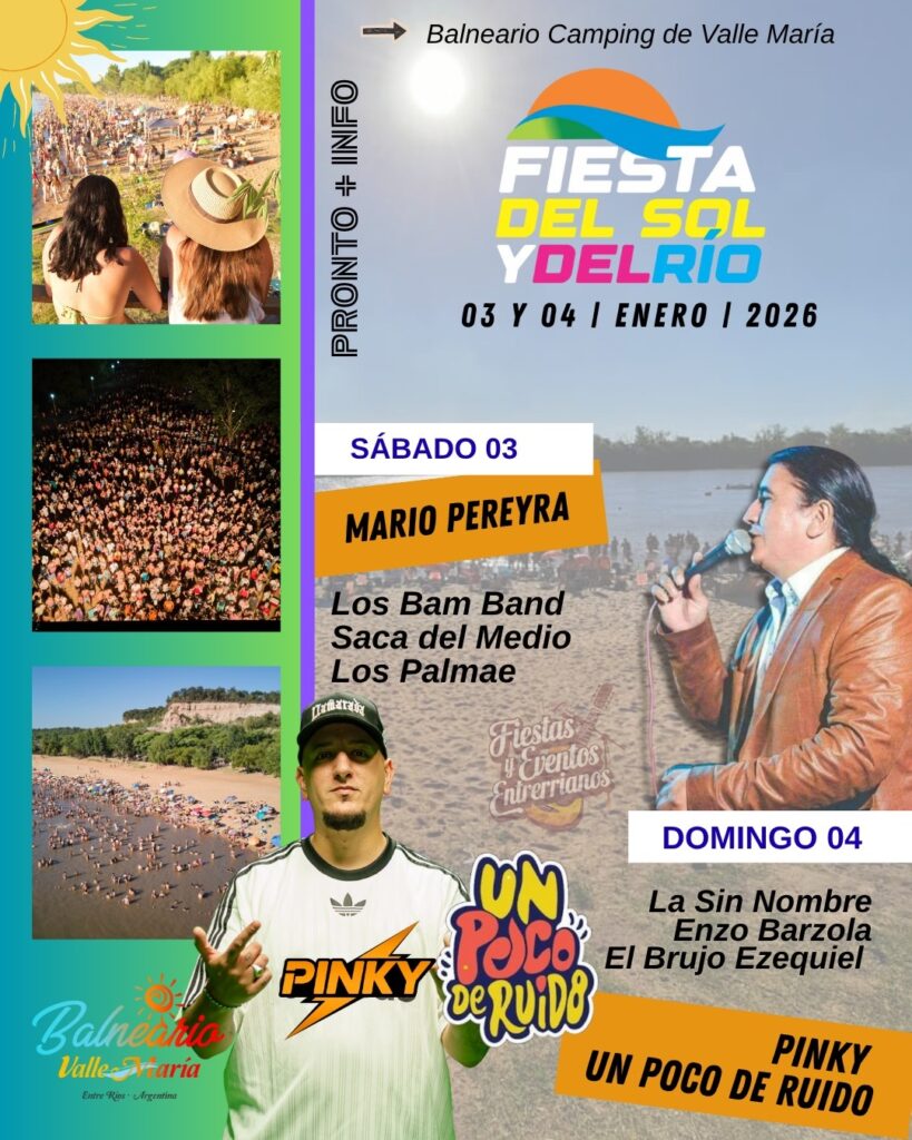 La temporada estival en el departamento Diamante tendrá su primera gran cita con la “Fiesta del Sol y del Río 2026”, que se realizará el sábado 3 y domingo 4 de enero en el Balneario-Camping de Valle María.